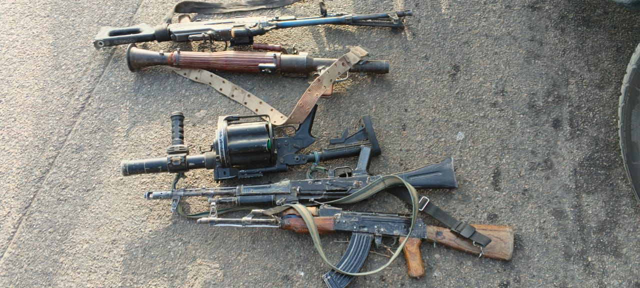 Security sources confirmed that four AK-47 rifles, a PKT anti-aircraft gun, a Rocket Propelled Gun, and a multiple grenade launcher were recovered during the operation.