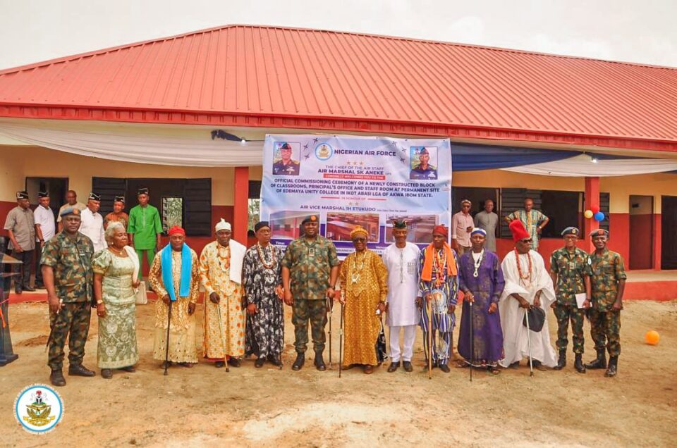 The Nigerian Air Force (NAF) has commissioned a newly constructed block of classrooms and staff offices at the permanent site of Edemaya Unity College in Ikot Abasi Local Government Area of Akwa Ibom State, further strengthening its civil–military relations efforts.