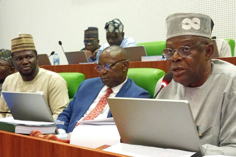 L-R: Member of Representatives committee on finance Hon. Kayoda Tijani, clerk of the committee, Barr. Oscar Okoro and chairman of the committee, Hon. James Abiodun Feleka, during the committee’s Investigative hearing session, with National Sugar Development Council (NSDC) on the revenue monitoring exercise covering the 2023–2025 fiscal years, at the National Assembly in Abuja On Wednesday PHOTO JONATHAN LOIS