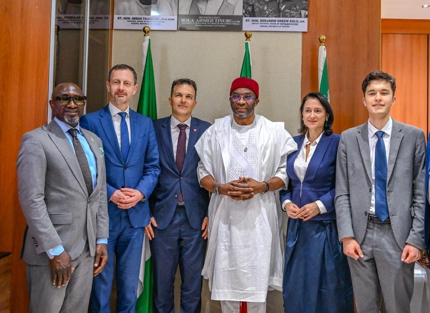 Delegation from First Step Forum, Amos Magaji (l) Edward Heyer (2nd left), Marc Jost (3rd left), Gudrun Kugler (2nd right) with the Deputy Speaker of the House of Representatives, Hon. Benjamin Kalu, (m) during a courtesy visit recently in Abuja