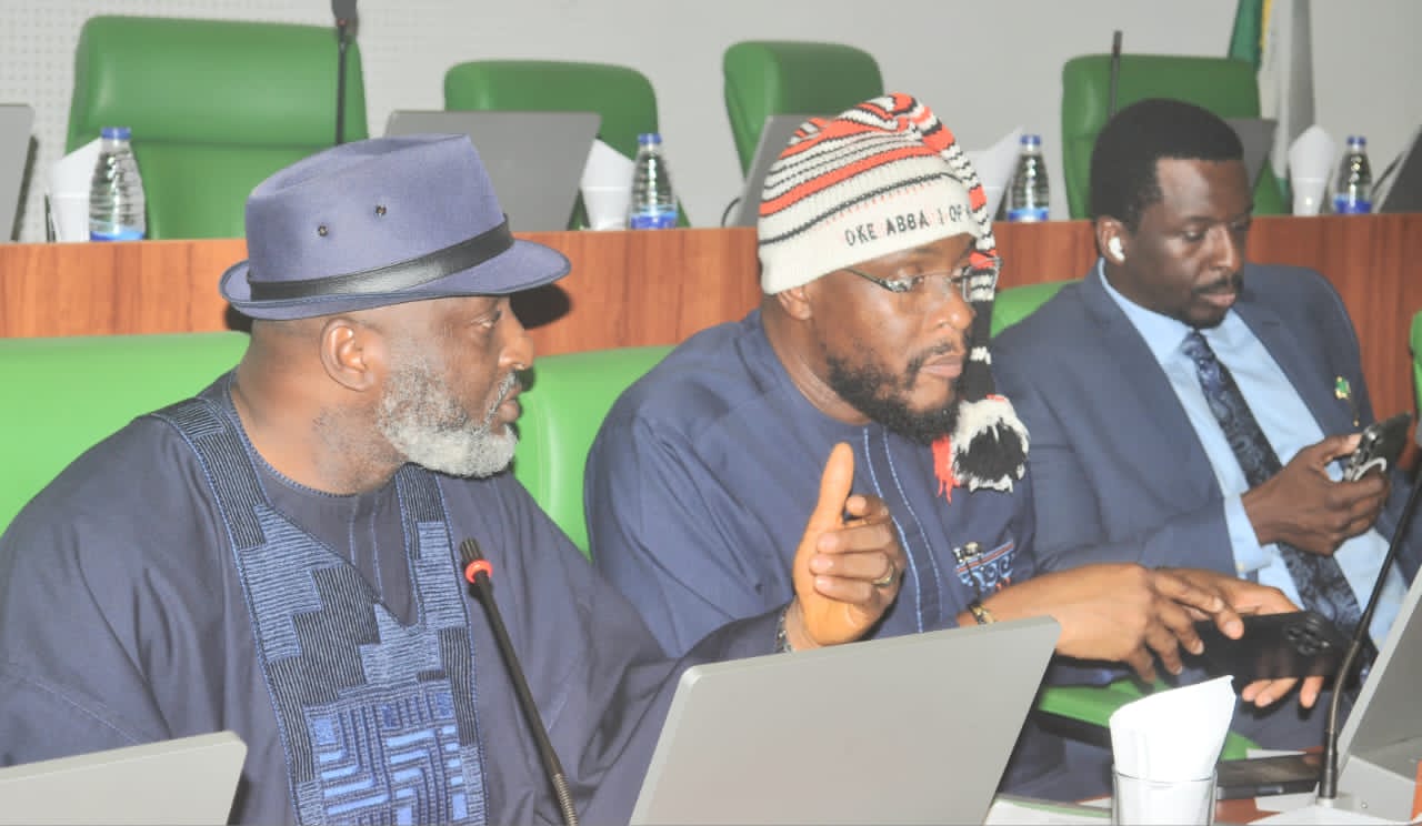 L-R : Chairman of the House of Representatives’ Committee on Infectious Diseases, Hon. Amaobi Godwin Ogar, members of the committee, Hon. Ibe Osonwa and Hon. Uche Harrison Okonkwo, during a public hearing on grants received by Nigeria from Global fund and USAID at National Assembly, Abuja. On Wednesday : PHOTO JONATHAN LOIS